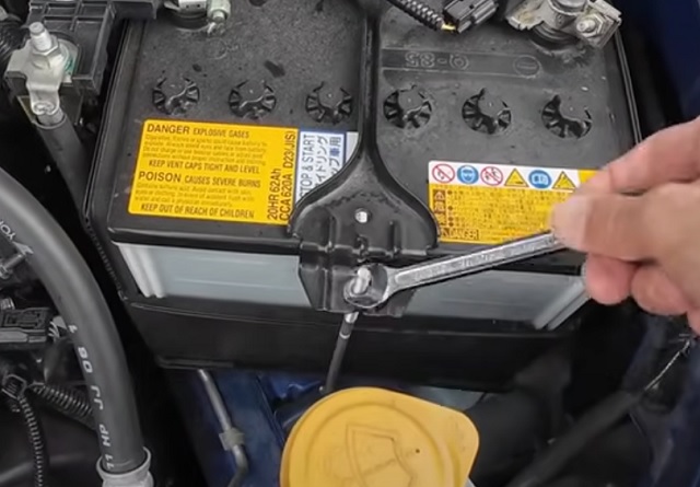 バッテリーを外すにはバッテリーステー、プラス端子とマイナス端子を固定しているナットを緩める必要があります。10mmのコンビネーションレンチがあれば早回しと本締めの両方を一本の工具で行えます。