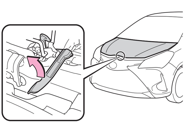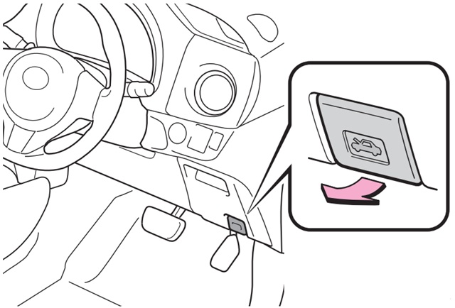 ↓ 運転席にあるボンネットオープナーのレバーを引きボンネットを浮かせます